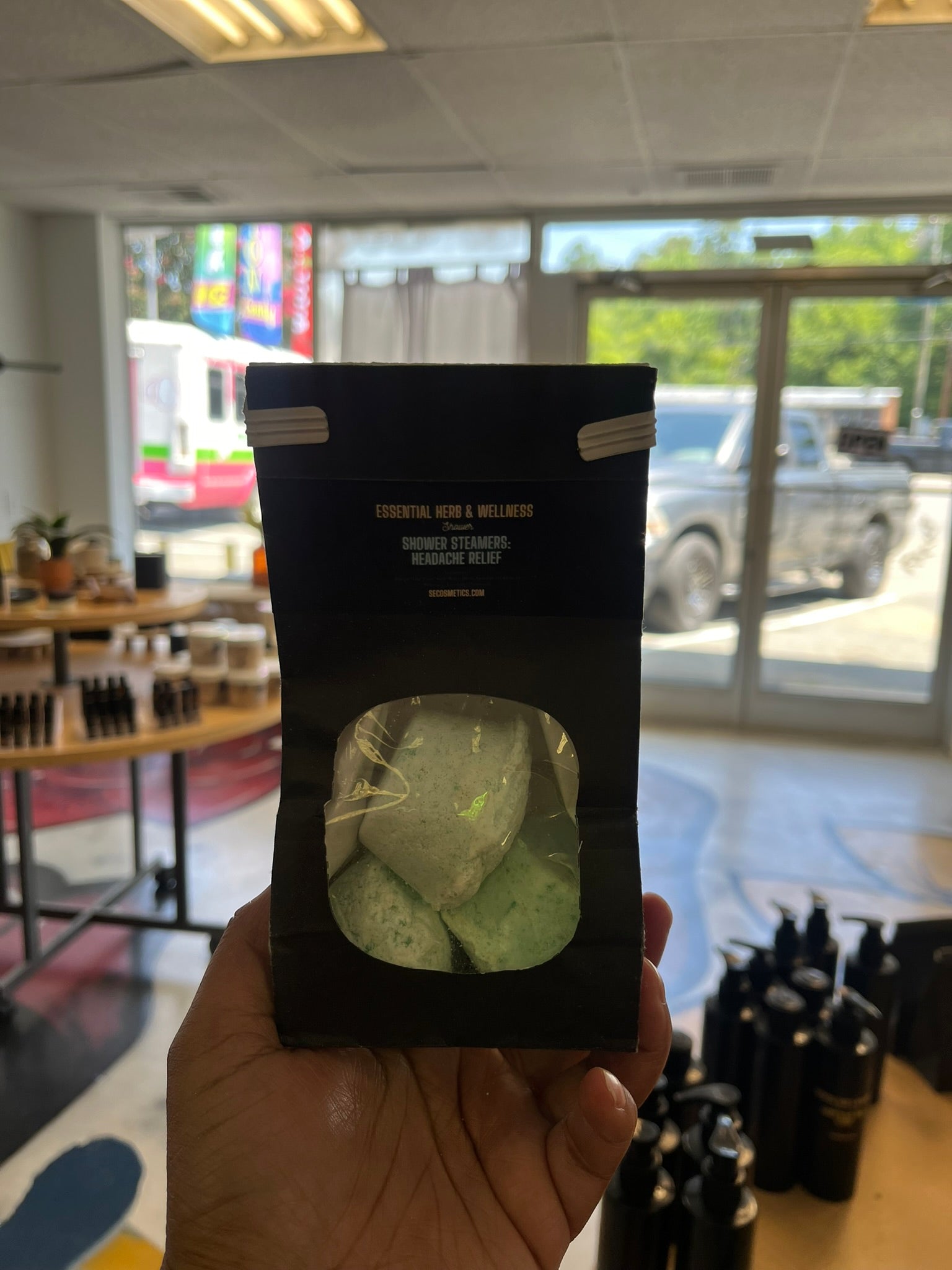 Description: A soothing shower steamer made with peppermint, eucalyptus, rosemary, lavender, and chamomile to help alleviate headache symptoms.
