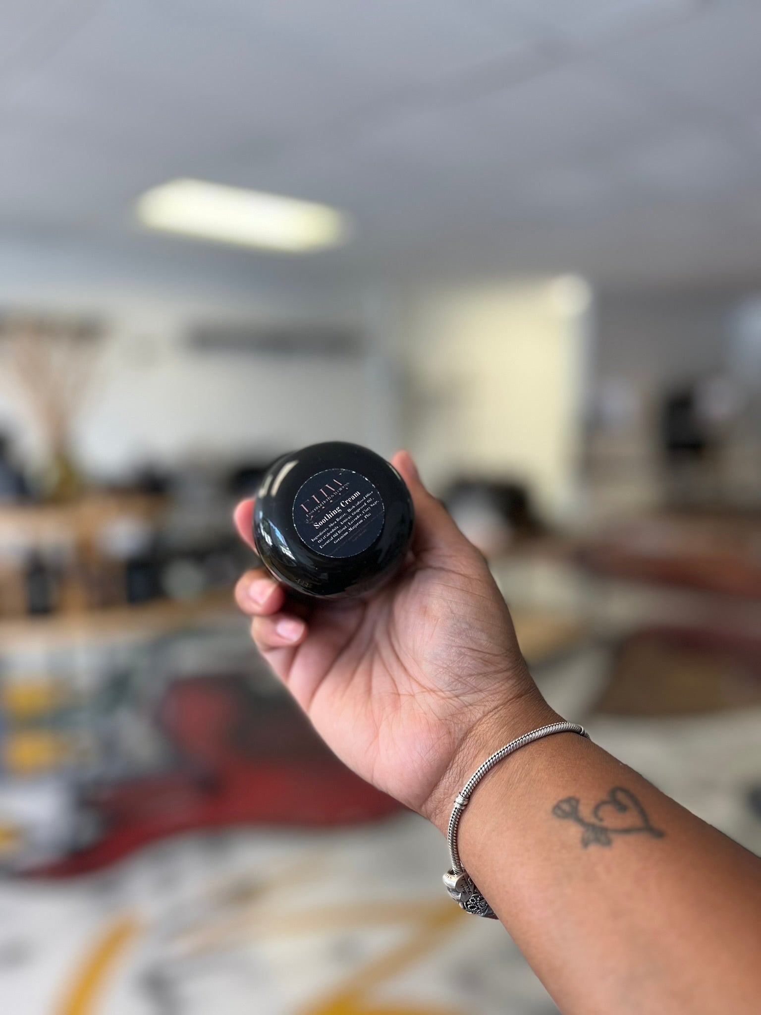Ingredients: Shea Butter , Castor Oil , Vitamin E Oil , Essential Oil Blend Lavender (Lavandula Angustifolia), Geranium (Pelargonium graveolens) , Clary Sage (Salvia sclarea) , Marjoram (Origanum majorana) , Plai (Zingiber cassumunar).